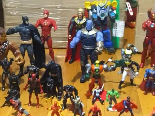 Colección variada de figuras de superhéroes de diferentes clases. - Figuras de acción de personajes icónicos. - Incluye héroes y villanos. - Ideal para coleccionistas y fans.
