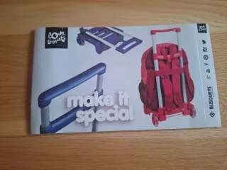 Práctico carro plegable de color rojo, ideal para mochila escolar - Estructura de metal y base de plástico. - Mango ergonómico para un agarre cómodo. - Diseño compacto y ligero. - Usado durante un curso.