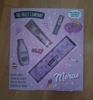 Kit de regalo de The Fruit Company con aroma a Moras. Incluye varios productos para el cuidado personal. - Aceite labial - Crema de manos - Eau de Toilette - Neceser de mano
