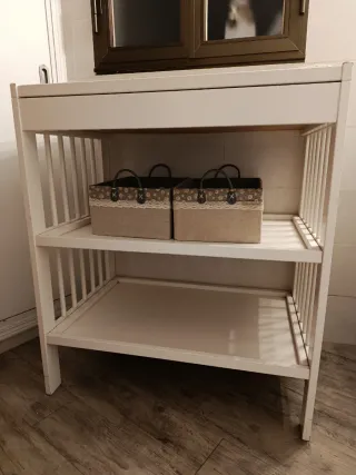 Cambiador de bebé en color blanco, ideal para la habitación infantil. - Estructura de madera - Diseño de barras laterales. Cestas no incluidas