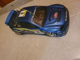 Vendo por perder afición Coche radiocontrol " gasolina" Kyosho Fazer Rally FW05-T pista, a escala 1/10 con carrocería Subaru. Motor nitrometano16% con bujía glow. Tracción 4x4 y freno de disco, cambio automático de dos velocidades. Muy rápido, ajuste trim, desde el mando, chasis de aluminio y carrocería plexiglás. Todo lo necesario para el hobby: emisora receptor y baterías, herramientas cargadores y chispometro, cámara analogíca y receptor para conducción POV, biberón de combustible, diferentes ruedas y accesorios de reglaje. Evidentemente usado, por muchos años, con desperfectos estéticos pero completamente funcional.