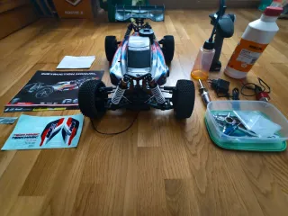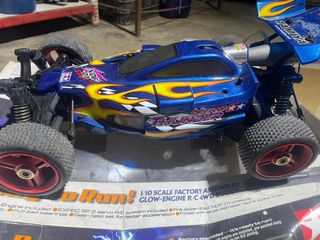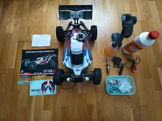 Coche de radiocontrol a gasolina. - Motor nitro. - Baterías incluidas. - Neumáticos de goma.