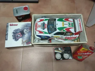 Se vende coche radiocontrol con carrocería de Ford Escort y decoración Repsol. - Carrocería blanca y roja. - Detalles de patrocinadores. - Incluye baterías y mando. Vendo 2 coches de gasolina y un coche eléctrico además de muchas otras piezas, de hecho todo lo que puedes ver en las fotos. No son funcionales, hay que montarlos.