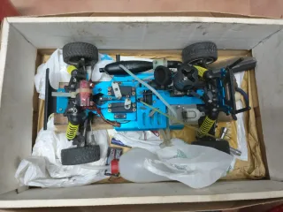 Coche radiocontrol de gasolina, marca Thunder Tiger. Ideal para aficionados a las carreras. -El Motor no funciona. El resto de mecánica funciona correctamente. Incluye emisora con su embalage original. - Incluido calentador de bujía prácticamente nuevo con su embalaje original. - Motor de gasolina, combustible no incluido por motivos de seguridad. - Precioso Chasis azul de aluminio. - necesita cambio de ruedas y no lleva carcasa.