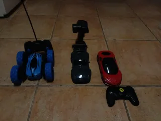 Conjunto de coches radiocontrol teledirigidos. - Coche azul con ruedas grandes. Para hacer trompos y subir por cualquier lugar Porche con posibilidad de hacer drift Ferrari igual que el porche aunque el giro a veces se bloquea hacia un lado Funciona muy bien excepto el Ferrari que tiene ese fallito con sus mandos, los doy sin pilas, el porche el mando va con Pilar y elmcoche con batería. El precio es por los 3 Utilizan pilas AA y AAA puedo llevarlas para probar pero si las dejo puestas serían 15€ los 3