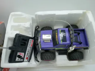 Coche radiocontrol Nikko Explorer Sound Machine en color morado. - Mando a distancia Nikko R/C Systems. - Frecuencia 27MHz. - Neumáticos grandes para todo terreno Caja en mal estado . Funcionando perfecto