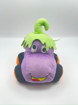 Peluche divertido con forma de coche calabaza. - Color morado principal. - Detalles en verde, naranja y negro. - Cara sonriente con ojos grandes. Somos un equipo de voluntarios de SPAB(Sociedad Protectora de animales de Burjassot). Todos los fondos obtenidos de la venta de los artículos publicados en esta cuenta se destinan a cubrir las necesidades del refugio y a ayudar a los animales.
