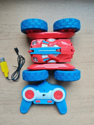 Coche teledirigido Stunt Force con mando a distancia. - Diseño blanco y azul. - Ruedas grandes para todo terreno. - Incluye mando. - Ideal para realizar acrobacias. -Rota 360 y es recargable.