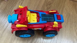 Coche de juguete con figura de Spiderman articulado ,tamaño grande Segun se ve en las fotos está casi sin usar . - Diseño inspirado en Spiderman. - Colores rojo, azul y amarillo. Aceptó ofertas