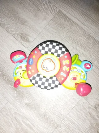 Volante interactivo para bebés de la marca Vtech. Diseñado para estimular el aprendizaje y la diversión. - Centro con diseño de tablero de ajedrez. - Incluye números y figuras. - Colores vivos y atractivos.
