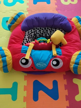 Coche de peluche suave y cómodo de la marca Playgro. - Diseño en forma de coche. - Colores vivos y alegres. - Texturas variadas para estimular al bebé. - Sonidos de coche cuando metes la llave de juguete Perfecto para cualquier superficie. Permite al bebe estar sentado muy cómodo.