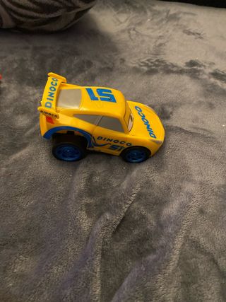 Coche de juguete Dinoco Cruz Ramirez de la película Cars. - Diseño inspirado en la película. - Color amarillo con detalles azules. - Número 51 en el lateral. - apretas detras y sale a la carrera