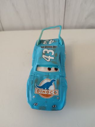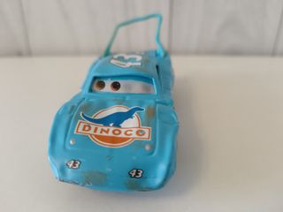 Coche de juguete del personaje de Disney Pixar Cars. - Fabricado en metal por Mattel. - Diseño azul con el número 43 y el logo de Dinoco.