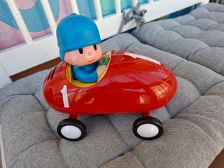 Divertido coche de carreras con el personaje Pocoyó. Ideal para los más pequeños. - Diseño de coche de carreras. - Personaje Pocoyó. - Color rojo brillante.