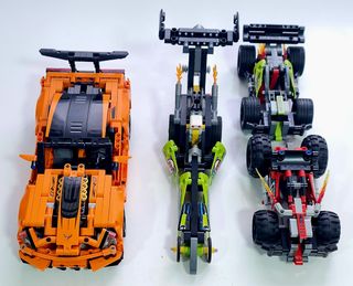 5 coches de varios tamaños. Nuevos y con la caja original, las instrucciones y piezas de repuesto. 42093 - 42073 - 42103 - 42072 y 60283.