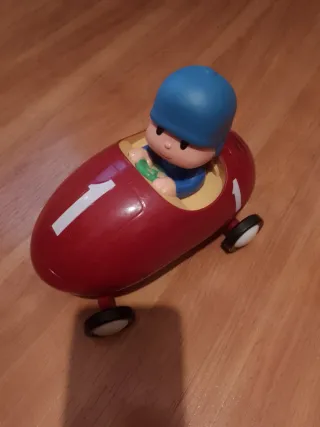 Preparados para la Carrera? Aprieta la cabecita de Pocoyó y ¡arranca a toda velocidad! El coche de carreras de Pocoyó tiene dos velocidades, música y sonido. ¡El coche choca y cambia de dirección! Mide 20 cm Dos modos de juegos: silencio o con música y sonido.
