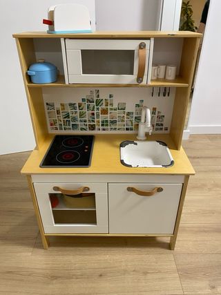 Cocina de juguete de Ikea, en buen estado. Ideal para juegos de imitación. - Incluye fogones, fregadero y microondas. - Dispone de varios accesorios de cocina. - Estructura de madera maciza, robusta y resistente.