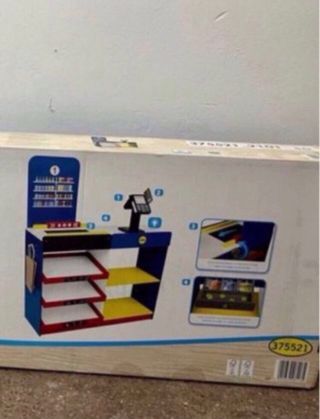 Nueva a estrenar. Se entrega desmontada en su caja. Tienda Lidl de madera con escáner de efectos luminosos y sonoros y cinta transportadora con manivela manual. Estructura estable de madera con estantes por ambos lados para guardar y exponer artículos. Caja registradora con función de calculadora y campo para firmar. Lector de tarjetas con tarjeta bancaria de juguete incluida. Cajón de dinero con dinero de juguete. Con todos los accesorios: Mostrador, cinta transportadora, separador de productos, expositor de folletos.... Hago envíos. tag: cocinita, cocina, pokemon, manualidades, garaje
