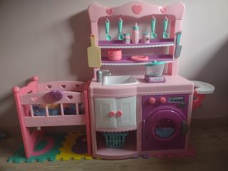 Cocinita con lavadora, trona, cuna y ac