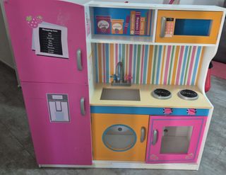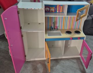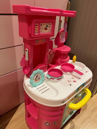 Negociable Preciosa cocinita de juguete para niñ@s. Está en buen estado y lista para que empiecen a jugar. - Incluye fregadero, fogones y horno. - Tiene nevera rosa y armarios con espacio de almacenaje. - Diseño colorido y alegre, ideal para estimular la imaginación.