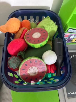 Utensilios para la cocinita: - Juego completo de utensilios de cocina de juguete. - Incluye ollas, sartenes, platos, cubiertos y más. - Incluye frutas y comidas con un velcro en medio - Batidora, funciona perfectamente - Delantal y manopla . Si se recoge en persona tengo cocinita un poco estropeada pero si la quiere se la puede llevar, le faltan las puertas y habría que ponerle un par de tornillos porque se han aflojado.