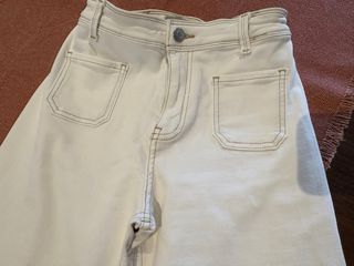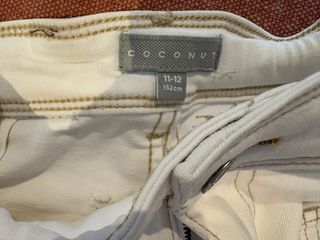 Pantalón tipo culotte de la marca Coconut ( El Corte Inglés ) para niña. - Talla 11-12 años. - Color blanco roto con pespuntes marrones. - Bolsillos delanteros. - Cintura con trabillas. -Cintura ajustable medidas cintura 28 cm, largo 90 cm