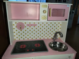 cocinita de jueguete, en muy buenas condiciones (ultima foto se ve una pintada) excepto eso en perfecto estado la vitroceramica se enciende y hace sonido. (regalo lavadora y micro que se ven en 3ra foto.