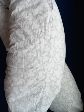 Cojín de lactancia con un suave estampado. - Diseño en forma de U - Color rosa y blanco - Solo venta en persona