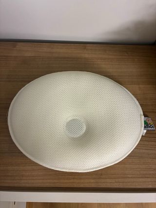 Cojín para bebés diseñado para prevenir y corregir la plagiocefalia. Su forma ergonómica se adapta a la cabeza del bebé. - Tejido transpirable. - Diseño con hueco central. - Suave al tacto.