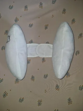 Este cojín sujeta la cabeza del bebé para evitar que se gire. - Color blanco. - Diseño con forma de mariposa. - Tejido suave y acolchado. - Cierre de velcro ajustable.