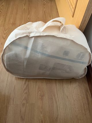 cojín de lactancia de la marca Jane. convertible en práctica hamaca para poner al bebé. reversible por un lado azul y por el otro pistacho. conservo la práctica funda de plástico con asa para transportarle o guardarle. así como el papel con las instrucciones. uno de los utensilios más prácticos que he tenido durante la lactancia y etapas posteriores en que el bebé necesita ayuda para mantenerse sentado