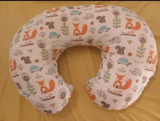 Cojín de lactancia de la marca Chicco con un divertido estampado de animales del bosque. - Diseño ergonómico. - Funda extraíble para lavarla. - Usado sólo 6 meses.