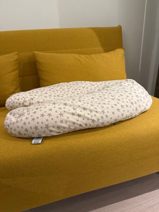 Cojín de lactancia y embarazo Niimo XXL con un bonito estampado de estrellas grises. - No tiene manchas. - Muy poco usado. - Diseño ergonómico. - Funda extraíble y lavable. - Relleno suave y confortable.
