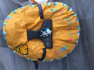 cojín de lactancia de la marca Jane. convertible en práctica hamaca para poner al bebé. reversible por un lado azul y por el otro pistacho. conservo la práctica funda de plástico con asa para transportarle o guardarle. así como el papel con las instrucciones. uno de los utensilios más prácticos que he tenido durante la lactancia y etapas posteriores en que el bebé necesita ayuda para mantenerse sentado