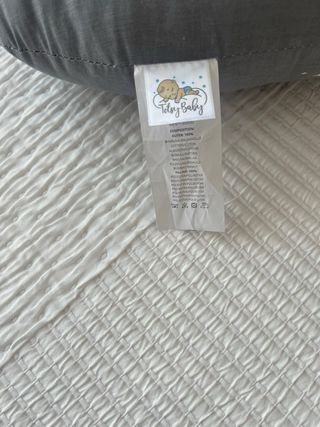 Preciosa almohada de lactancia en color gris. Ideal para amamantar a tu bebé con comodidad. - Suave y cómoda. - Perfecta para dar soporte a la espalda y al bebé durante la lactancia. - En buen estado. Desenfundable y lavable. Ver una mancha como flúor, no es lejía ni nada tóxico salió al lavarla.