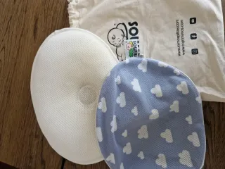 Cojín para prevenir y tratar la plagiocefalia, diseñado para bebés de la marca Mimos. Es suave y cómodo y lavable. Solo fue usado unas semanas - Talla S. - incluye dos fundas con estampado de nubes.