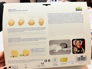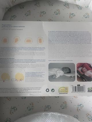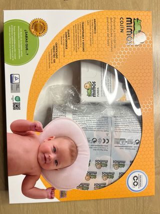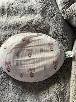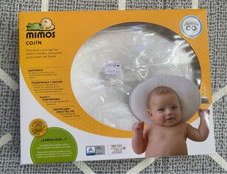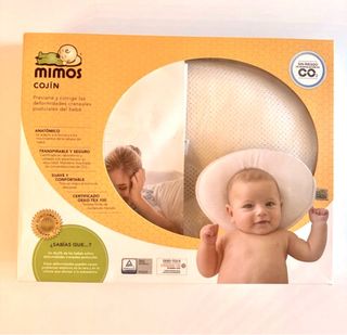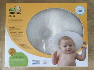 Cojín postural Mimos para bebés, diseñado para prevenir y corregir deformidades craneales. Es suave y confortable. - Previene y corrige deformidades craneales posturales del bebé. - Tejido transpirable y seguro. - Certificado OEKO-TEX 100. - Textil libre de sustancias nocivas. Tal y como pone en la etiqueta, nuevo cuesta 59€. Apenas usado.