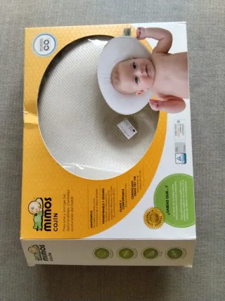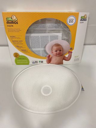 Cojín Mimos para prevenir y corregir deformidades craneales posturales en bebés. Incluye funda transpirable. Se ha usado una vez (unos 20 min) y no se adaptó. Así que está a estrenar. Se entrega con la funda lavada y desinfectada. - Previene y corrige deformidades craneales. - Anatómico, se adapta a la forma y movimientos de la cabeza. - Transpirable y seguro, certificado en laboratorio. - Suave y confortable para un mejor descanso. - Tejidos libres de sustancias nocivas (OEKO-TEX 100).