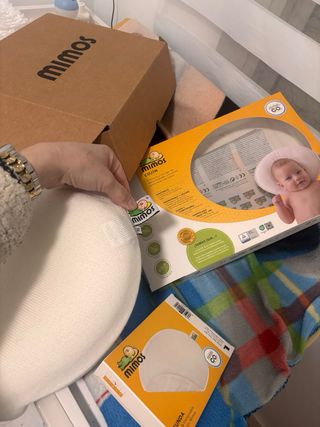 Cojín Mimos para prevenir y corregir deformidades craneales posturales en bebés. Diseñado para adaptarse a la forma y movimientos de la cabeza del bebé, ofrece transpirabilidad y seguridad. Usado poco, viene con una funda y su caja - Certificado OEKO-TEX 100: textiles libres de sustancias nocivas. - Anatómico y transpirable. - Suave y confortable para el descanso del bebé. - Validado por expertos para garantizar la seguridad. - Mantiene bajas las concentraciones de CO2.