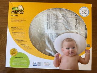 Se vende cojín Mimos para bebé, ideal para prevenir y corregir deformidades posturales (plagiocefalia). Incluye su funda original transpirable. - Previene y corrige deformidades craneales posturales del bebé. - Diseño anatómico. - Transpirable y seguro. - Suave y confortable. - Certificado OEKO-TEX 100. Producto en muy buen estado, limpio y cuidado, tal y como se ve en las fotos. Se entrega con su caja original.