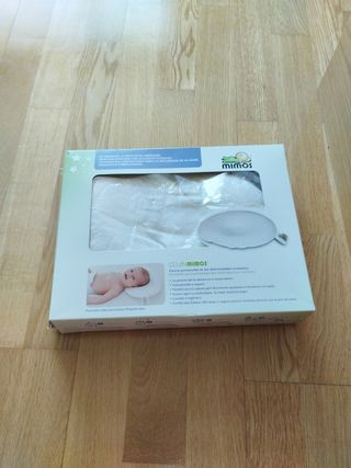 Cojín Mimos para bebé en talla S, con funda blanca incluida. Diseñado para el confort y la correcta postura. Ayuda a prevenir y tratar la plagiocefalia, producto transpirable y esponjoso. Muy poco uso, se entrega con su embalaje original, cajas y plásticos. - Talla S. - Incluye funda blanca.