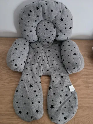 Cojín reductor de doble capa para la cabeza y el cuerpo del bebé, diseñado para ofrecer soporte y comodidad. - Color negro y gris. - Material suave al tacto. - Diseño de doble capa para mayor soporte. Está prácticamente sin usar