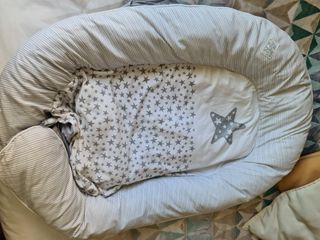 Precioso nido para bebé recién nacido, ideal para los primeros meses. Está en perfectas condiciones y es muy cómodo. - Diseño con estampado de búhos y conejos. - Se adapta perfectamente a la cuna. - Incluye un cojín reductor central.