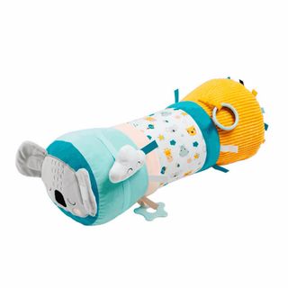 de gateo de Fehn El rodillo de gateo ayuda en los primeros intentos de caminar y gatear, favorece el apoyo y el reflejo de prensión y, por tanto, estimula la motricidad del bebé. El sonajero de la cola del león suena alegremente con cada movimiento. El papel crujiente en las rayas de colores y la colorida mezcla de materiales de pana, suave velours, felpa y tela invitan a tocar y descubrir, a jugar y maravillarse. En el interior hay un rollo inflable, en el exterior la suave cubierta de colores proporciona una entretenida diversión al jugar.