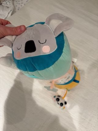 Cojín sensorial Eureka Kids con diseño de koala y animales de la selva. Ideal para estimular a los bebés. - Texturas variadas: tela de canalé, suave y con estampados. - Incluye un anillo de dentición de madera. - Elementos colgantes y cintas para explorar. - Diseño colorido con koala, jirafas, hipopótamos y más.