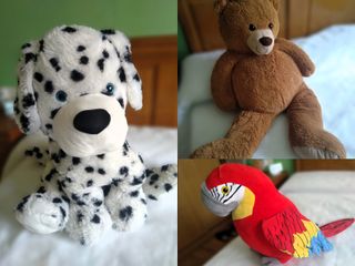 📦 Qué incluye Oso marrón de 90 cm, dálmata de 60 cm, guacamaya de 50 cm, tres peluches de gran tamaño, artículo para decorar habitación infantil, coleccionistas, compañía, cojín de lectura o elemento decorativo. ⚠️ Estado Muy suaves, en buen estado. 🚚 Condiciones de venta No hago envíos.