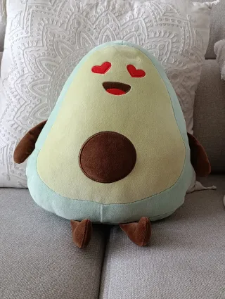 Peluche con forma de aguacate. Altura 30cm. - Material suave y agradable al tacto. - Forma de aguacate con cara sonriente y ojos de corazón. - Ideal como cojín decorativo o compañero de juegos.