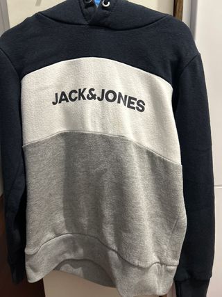 Sudadera de niño con diseño de bloques de color. - Parte superior azul marino. - Banda central blanca con logo. - Parte inferior gris.
