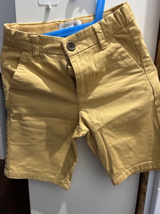 Pantalón corto de color mostaza, ideal para el buen tiempo. - Cintura elástica. - Cierre de cremallera y botón. - Bolsillos delanteros.