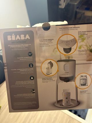 Dispensador de leche Béaba Bib' Expresso. Permite preparar biberones de forma rápida y sencilla. Se utilizo una vez , ya que fue entregado nuevo al cambio de una garantia - Diseño moderno y compacto. - Tapa protectora para la tetina.